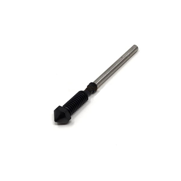 Hardened steel nozzle 0.4 mm met PTFE tube voor Flashforge Creator 3. Het wordt aangeraden om de temperatuur 5 tot 10 graden hoger te zetten, omdat de thermische geleidbaarheid van gehard staal minder is. Bestel ook de Hardened filament feeding gear voor het beste 3D-printresultaat met Carbon Fiber filament.